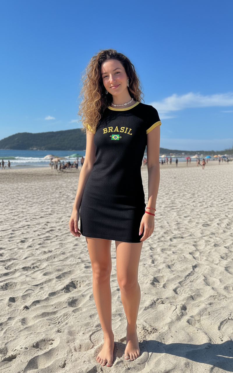 O destaque da peça é o bordado “BRASIL” com a bandeira, que traz personalidade e um visual moderno inspirado no estilo casual brasileiro.